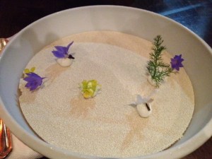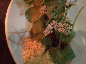 Red Medicine in Beverly Hills: I first heard of this place when it was featured on Anthony Bourdain’s The Layover. Whimsical forests of edible flowers, chlorophyll spiked sauce, and uni rice porridge? And to top it all off, the majority of the dishes had all the flavor profiles of Vietnamese food–sweet, salty, sour, spicy. WTF? But it was good, very good–in the holy-shit-I-could-never-make-that kind of way. We ordered the brussel sprouts, beef tartar, dungeness crab, rice porridge, tamarind glazed lamb and birch ice dessert. Once in a while I have the pleasure of eating at a restaurant where money is well spent because there is no way I could ever replicate any part of that fantastic meal–except for maybe the brussel sprouts and shrimp chips. Hee-hee.