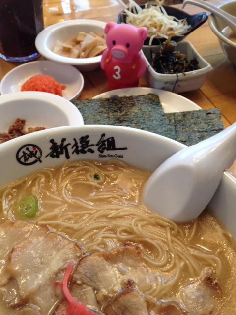 Shin-Sen Gumi in Little Tokyo for ramen: Our usual option for ramen in Little Tokyo is Daikokuya, but given that we were a party of 8, including 4 young children, we needed a place that could fit us all at one table. Alas, we stumbled upon Shin-Sen Gumi–what a fun scene and the ramen was oh so good. I will admit, however, that the ordering system at SSG is a bit confusing with choices for firmness and thickness of noodles, strength of broth, not to mention the myriad of toppings served on the side. I ordered firm and thin noodles, medium broth, and lots of toppings (nori, spicy tobiko, fried pork ears, and bamboo shoots). But it was all delicious, so much so that picky Souper Boy drained his bowl and Souper Girl slurped up the noodles with much gusto.