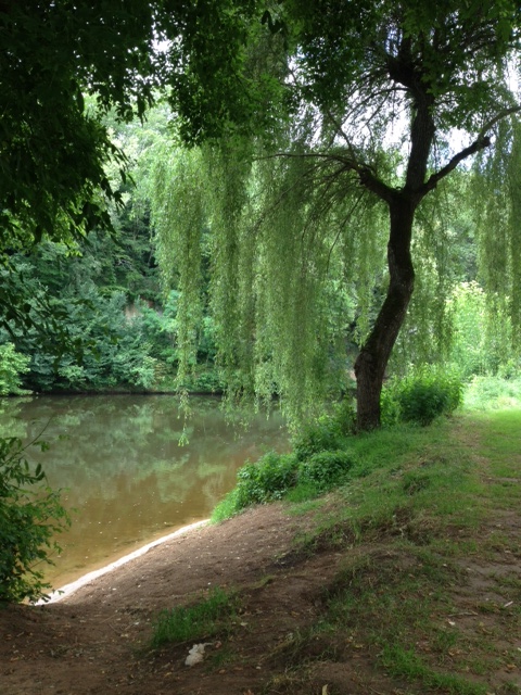 Seriously, I think we only came across one village that we didn’t care for; the rest were gorgeous and insanely perfect. Each one seemed to have its own little boulangerie, patisserie, cute cafe and weekly (sometimes twice a week) marche. (How do all these businesses make a living? But they do and seem to be flourishing.) I became quite partial to the villages along the Vezere and Dordogne rivers, where entire villages were either perched high up on cliffs or serenely hugging the river. My favorite little village has to be St. Leon sur Vezere, where along the river there is a little grassy area with weeping willows (I have a soft spot for weeping willows)–perfect for picnics and just lazing about while an occasional canoe/kayak goes by.