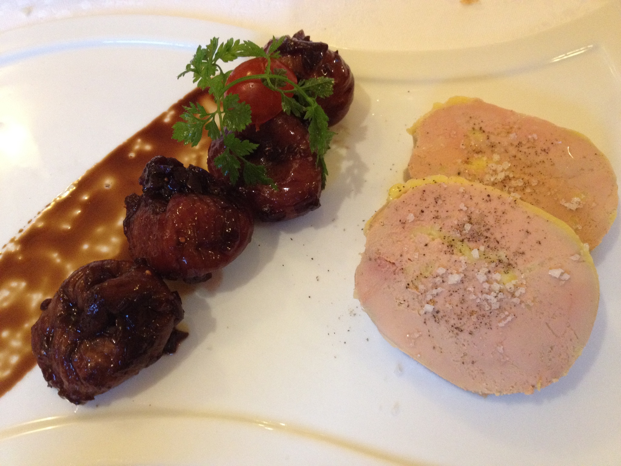 – And lastly, the food, oh the food! When we sat down for lunch in Sarlat, our first meal in France, I was giddy with joy and anticipation. I hadn’t ordered anything particularly special, just a salad with lardon and some local sheep cheese, but I was happy to be back in France and looked forward to all the local delicacies. From our farmhouse base, we had a daily breakfast of croissants, pain au chocolat, fresh baguette, cheese and that special yummy french butter. We even grilled steaks for dinner one evening, served with haricots vert, pan-seared potatoes, and an offering of olives and pickled garlic from the farmers market. And given our location in the Perigord, duck and foie gras were often on the menus when we ate out. In short, we ate like kings and queens, and below is the proof.