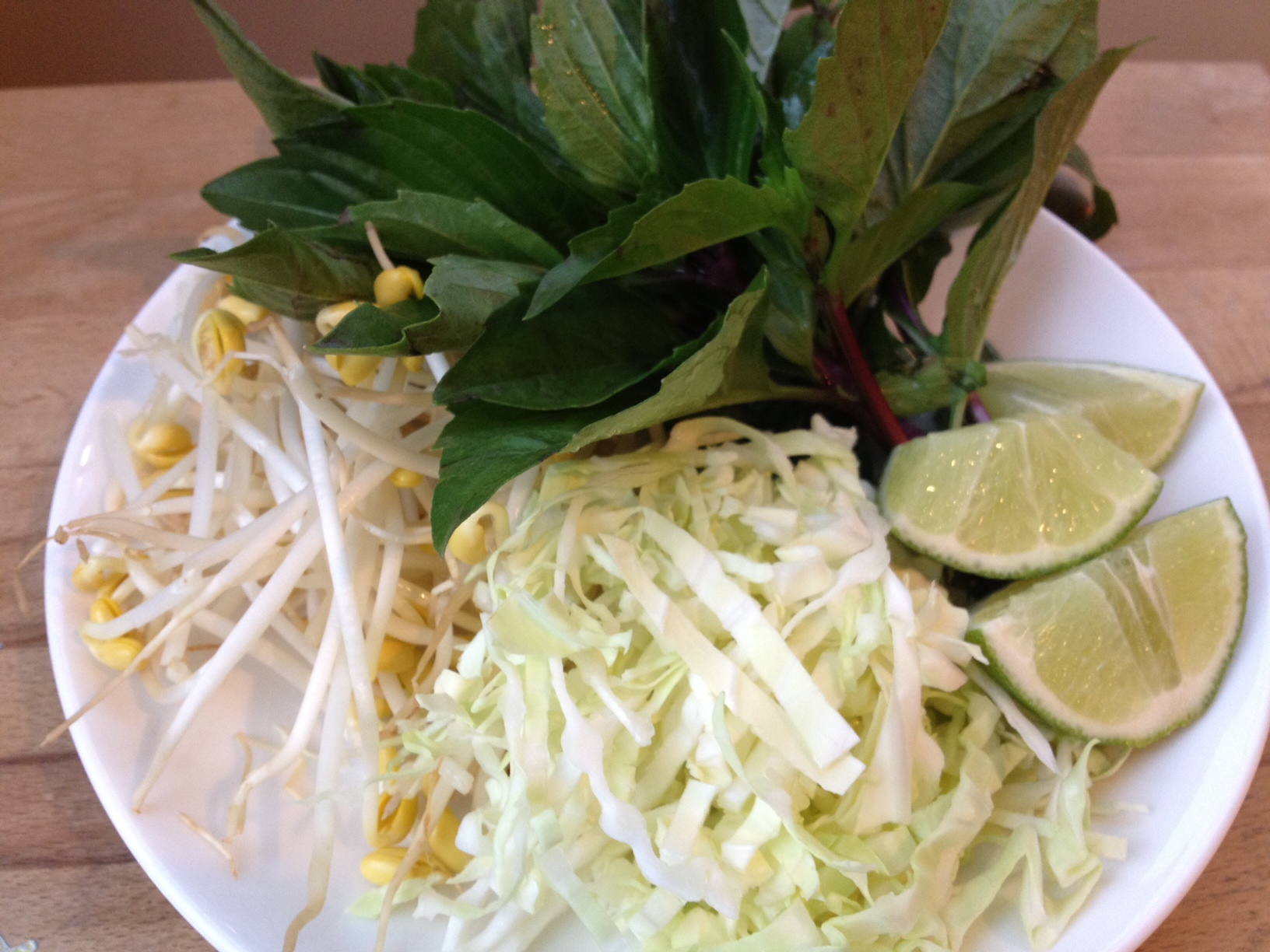 Assembling bowls: Place about 1 ½ cups noodles in large soup bowl (first, warm bowl with some hot water), top with sliced meats, sliced onions, cilantro and sliced green onions. Sprinkle with a dash of black pepper. Pour hot soup over everything and serve immediately with pickled onions and a plate of herbs, lime, bean sprouts, and cabbage.